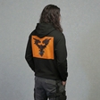 Чорне щільне худі. На спині — великий помаранчевий принт із пташкою-бомбером, на грудях — невеликий логотип ГРАК.
